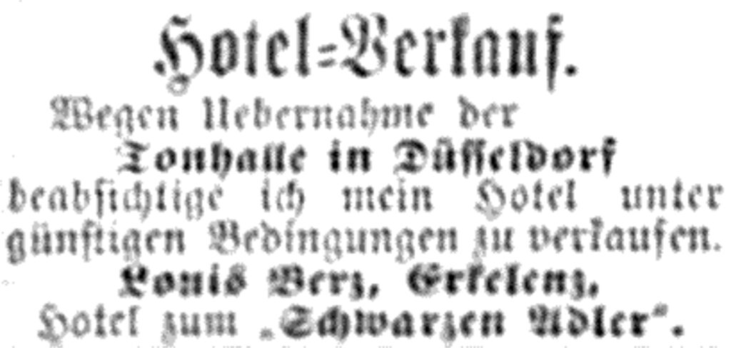 1884 suchte Louis Berz für sein Hotel einen Käufer, da er die Tonhalle in Düsseldorf übernommen hatte.
