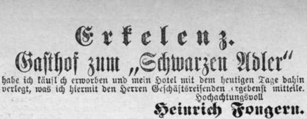 Über 150 Jahre trug die Gaststätte den Namen „Schwarzer Adler“. Auch als er dann abgelegt wurde und andere Namen erhielt, diente das Gebäude aber weiterhin dem Gastgewerbe.