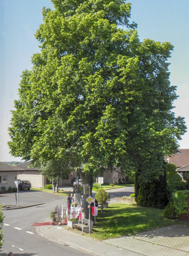 An der Ecke Holzweilerstraße / Postweg steht heute ein Kreuz unter großen Lindenbäumen. Früher gab es dort ein kleines Heiligenhäuschen. Wann und warum es abgerissen wurde, weiß man nicht.