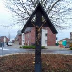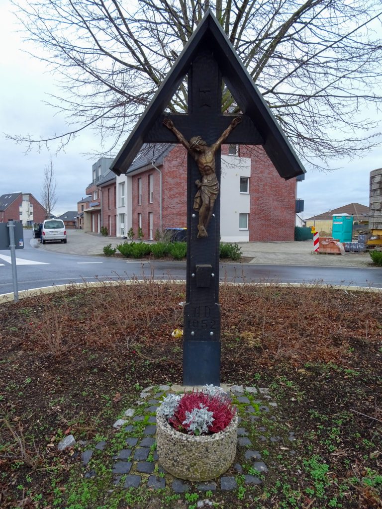 Josef Boss hatte 1952 ein neues Kreuz entworfen, angefertigt und dem Dorf gestiftet. Der Korpus stammt aus Süddeutschland und wurde von der Nachbarschaft finanziert.