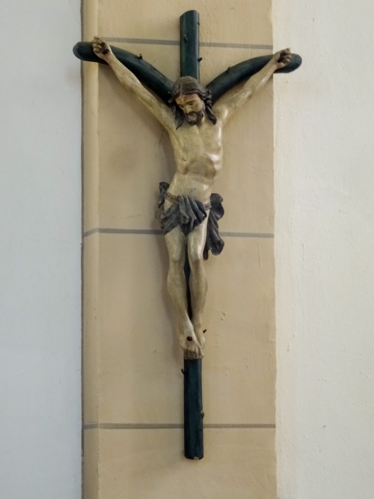 Standort Kirche bis Ende 1990er Jahre Attribute des Kreuzes Korpus in der Kirche