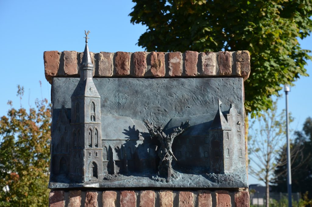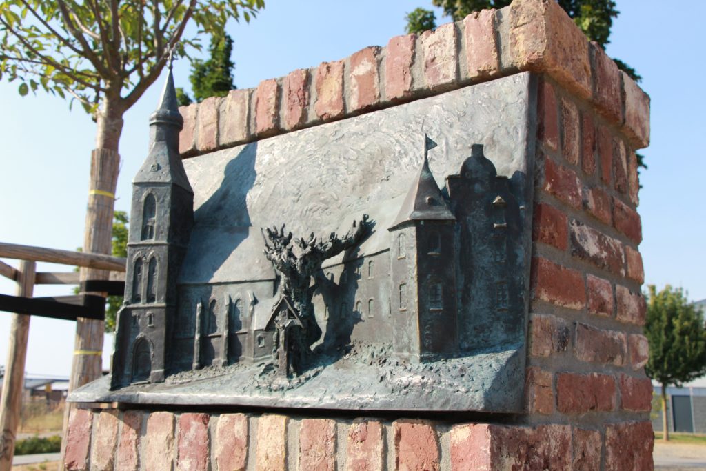 Das Werk erinnert an Kirche, Dorflinde (1689 gepflanzt, 2016 gefällt), Wegekreuz und Haus Paland und wurde anlässlich der Dorfumsiedlung aufgestellt