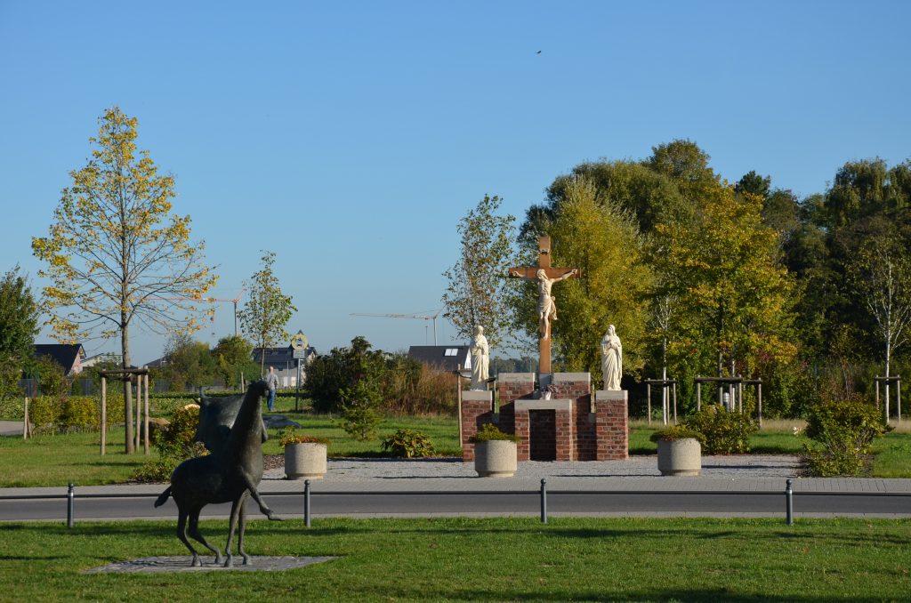 Im Rahmen der Umsiedlung wurden einige der Kultur- und Bodendenkmäler des bisherigen Ortes im neu entstandenen Ort wieder aufgebaut. Bei der Errichtung des neuen Friedhofes wurden bereits einige historische alte Grabplatten und Grabmäler mit in der neuen Friedhofsmauer eingelassen. Um die Kapelle herum errichtete man die Lourdesgrotte, Kreuzigungsgruppe, das Denkmal aus dem Jahr 1936 anlässlich des 300-jährigen Bestehens der Bruderschaft, das Ehrenmal, die Kriegergedächtnisgrotte. Alte Wegekreuze fanden an entsprechenden Stellen in den Straßenzügen einen neuen Platz (Kreuze Heyers, Dappen, Beeck), auf der Kreisverkehrsinsel steht eine neue Linde mit dem dazu gehörenden Wegekreuz.