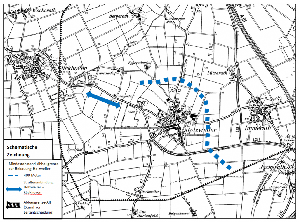 2016 reduziert die Landesregierung in Nordrhein-Westfalen im Landesentwicklungsplan3 das Abbaugebiet nochmals um die Gemeinde Holzweiler. Wahrscheinlich verringert sich dadurch auch der Abraumzeitraum.