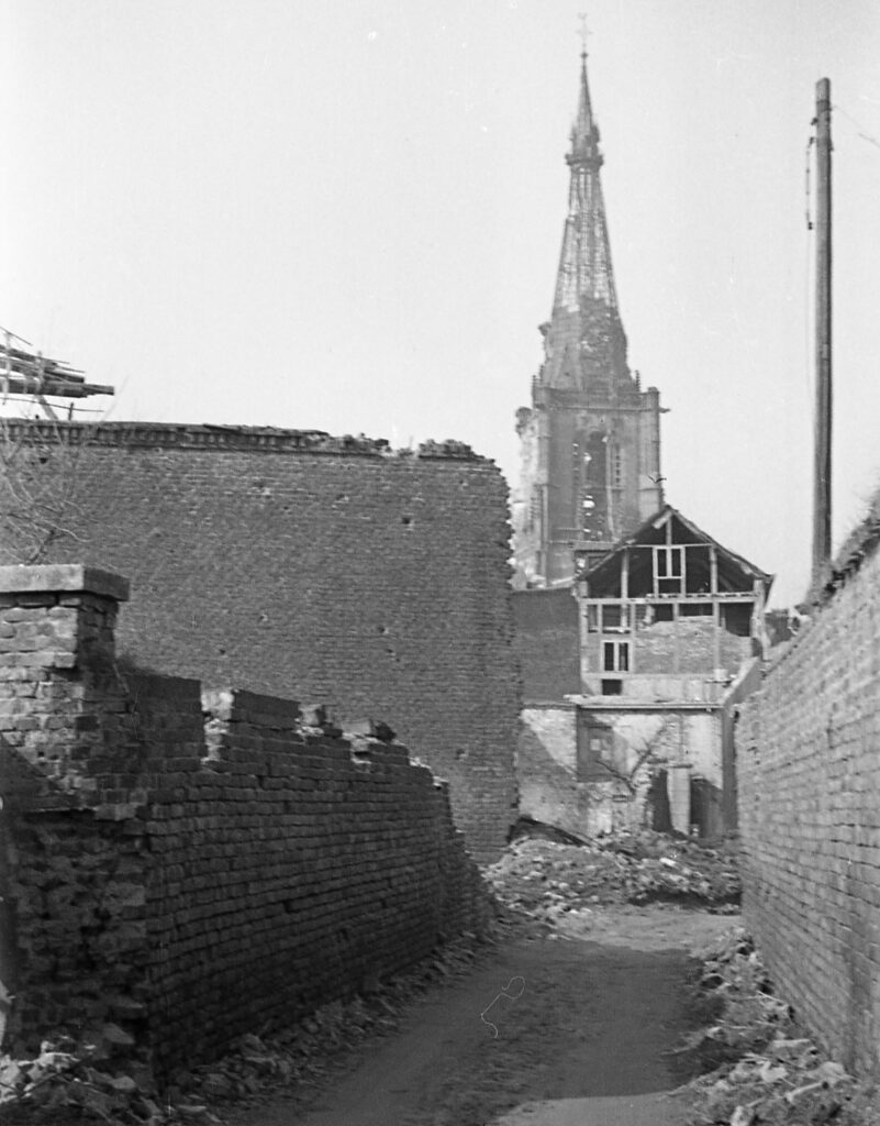 Das Krankenhaus fiel 1945 den Bomben zum Opfer. In seinem unterirdischen Schutzbunker war der letzte Befehlsstand des Erkelenzer Kampfkommandanten.