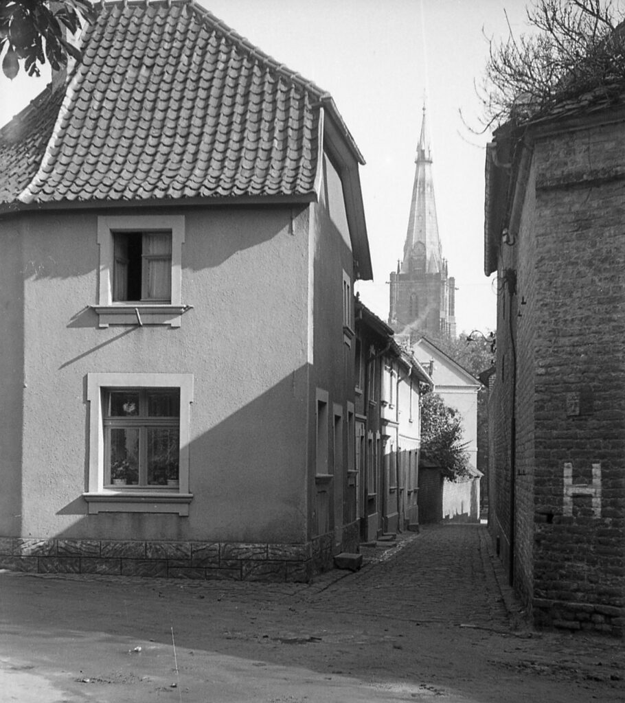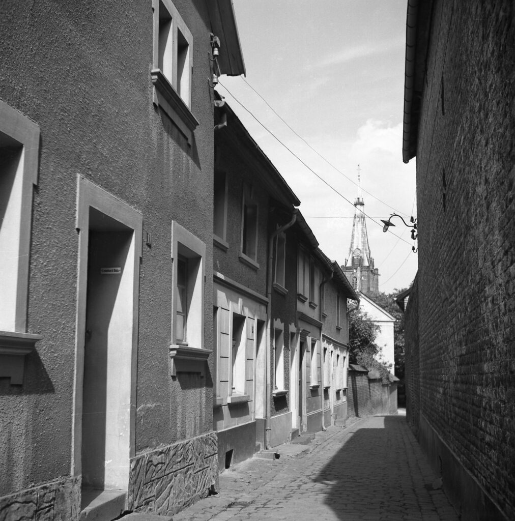 Die engen kleinen Häuschen dieser Gasse bilden in ihrer Geschlossenheit auch heute noch ein einzigartiges Ensemble: ein Stück Alt-Erkelenz.