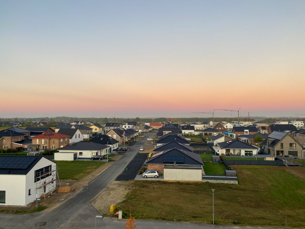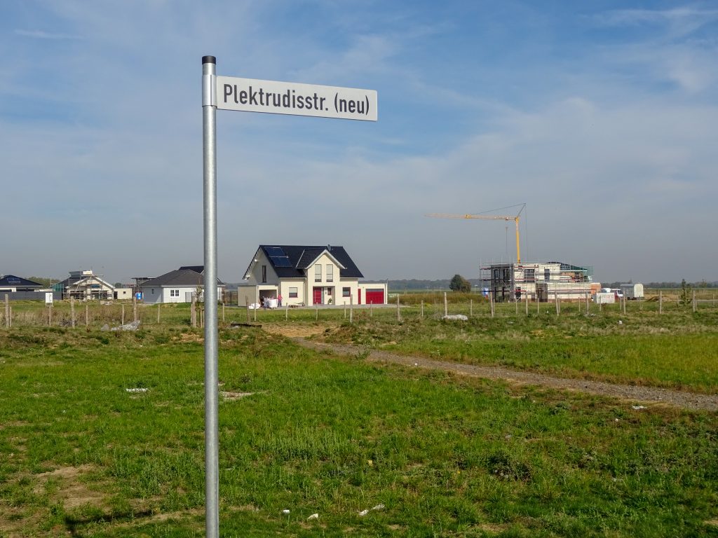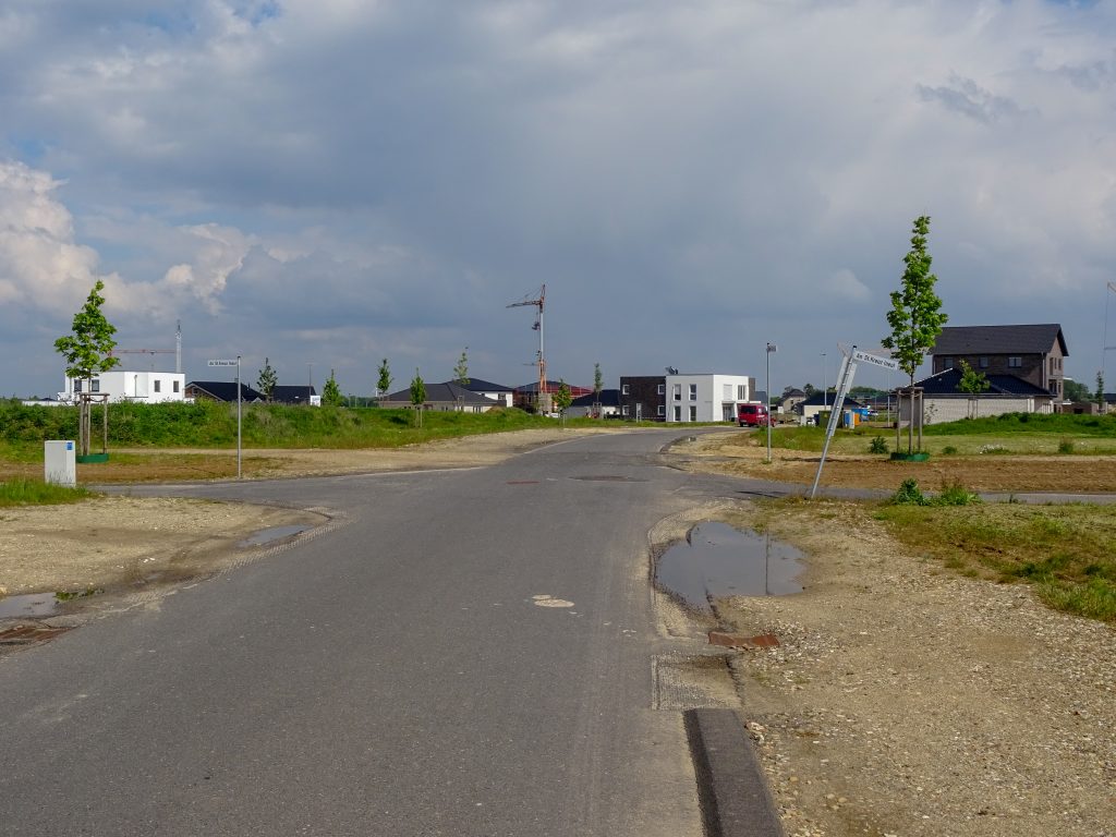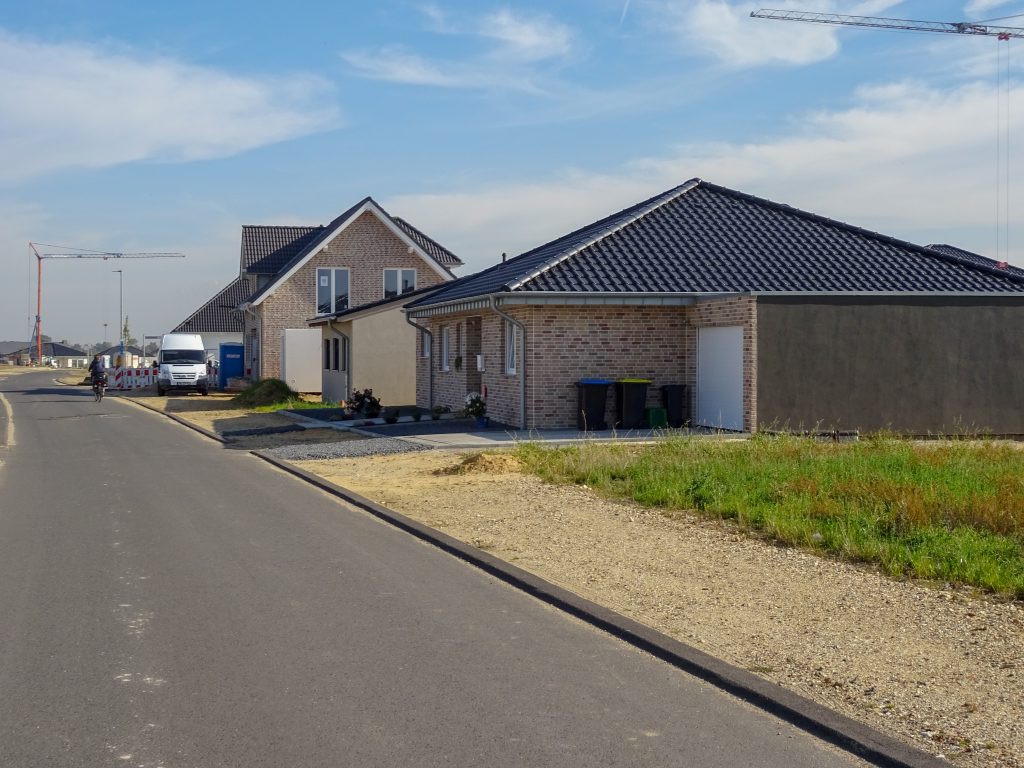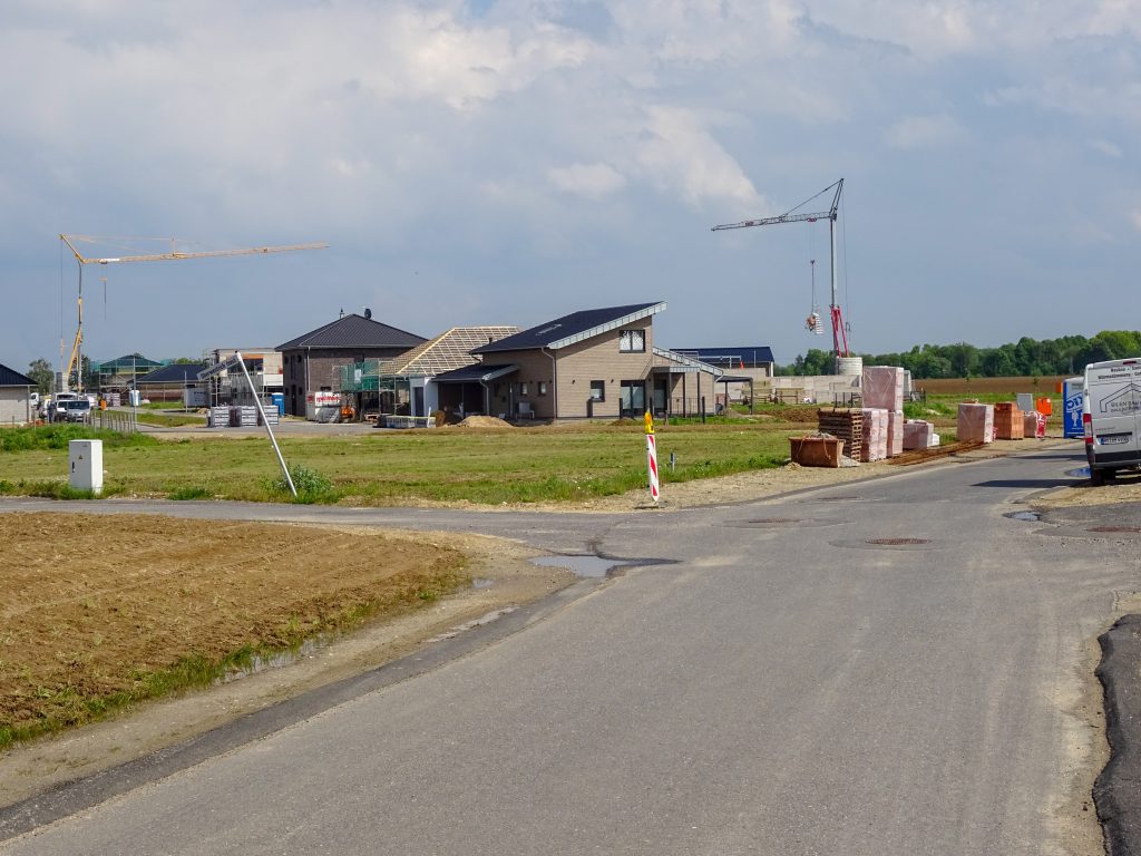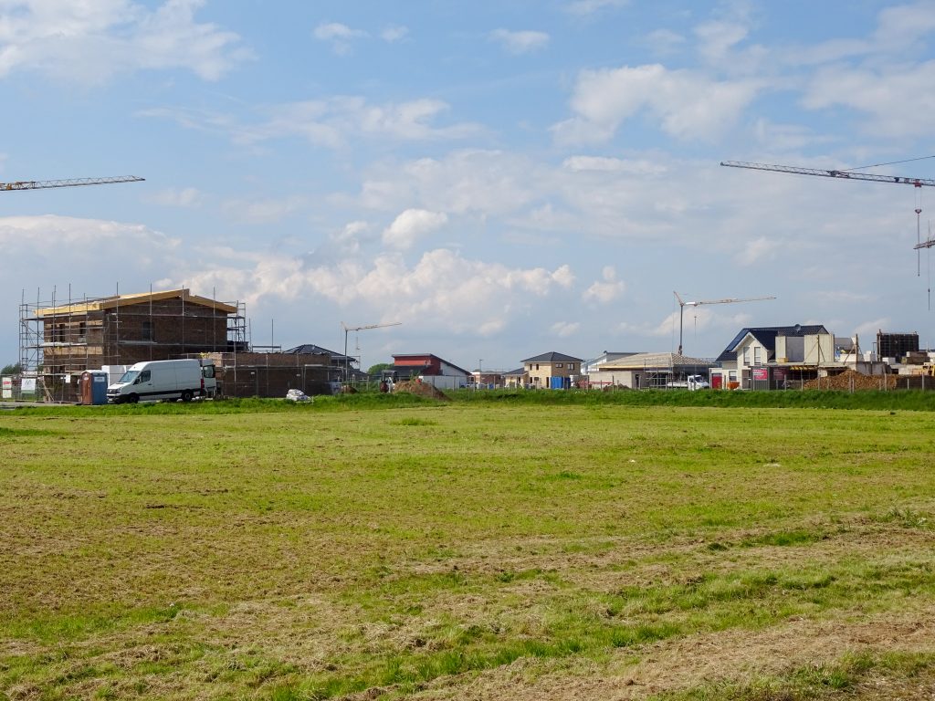 Laut Aussage einer Anwohnerin sind bereits 19 Häuser in Keyenberg (neu) bewohnt. Die Anzahl der Baukräne ist nicht weniger geworden, ein Zeichen für weitere rege Bautätigkeit.