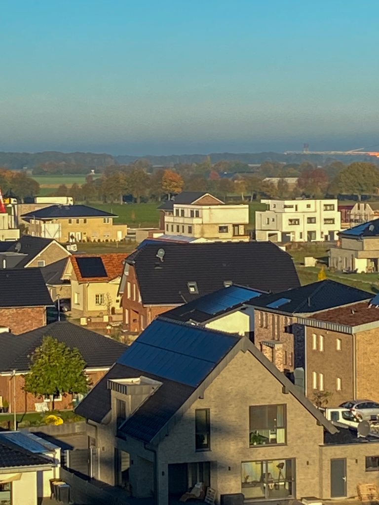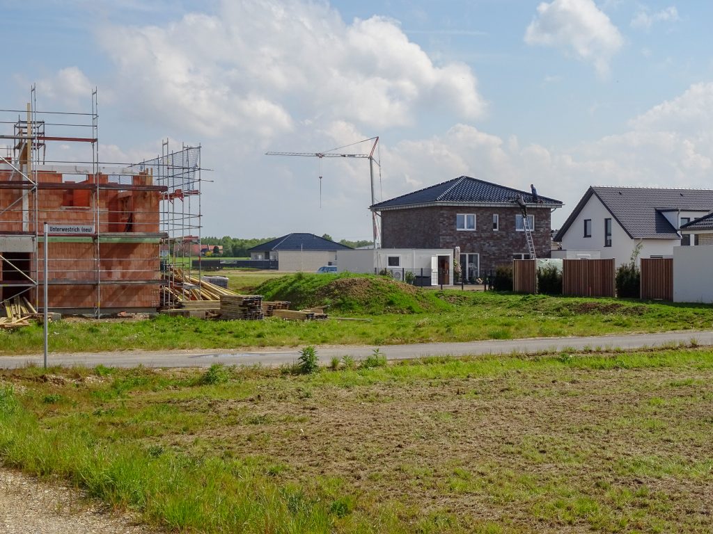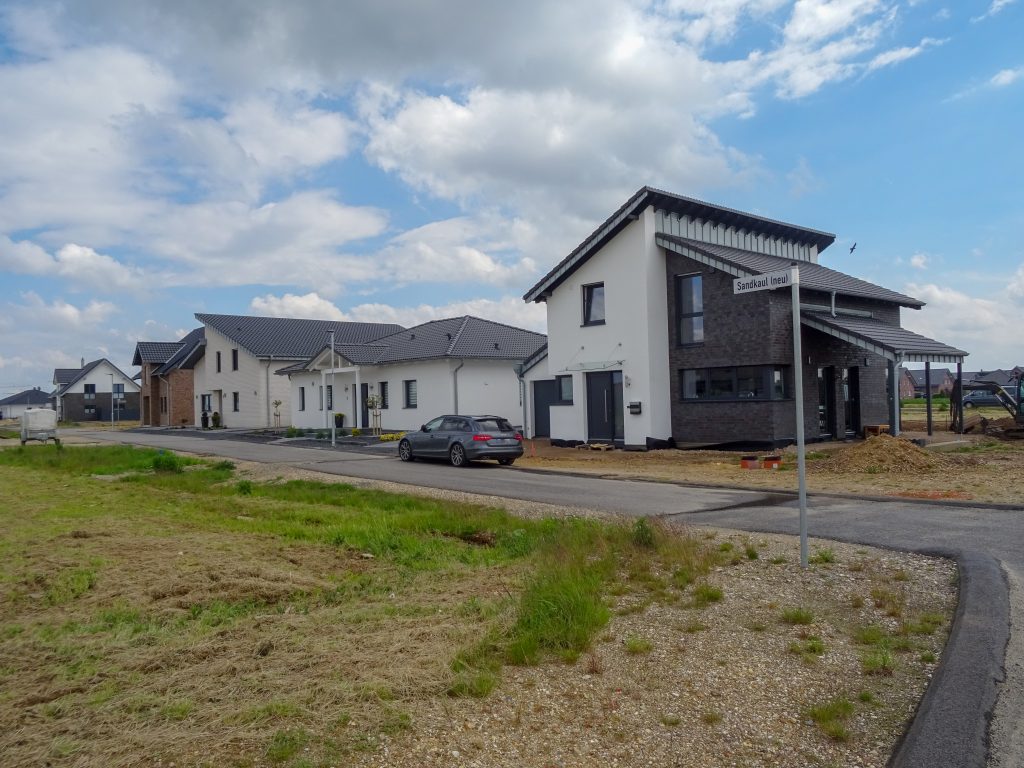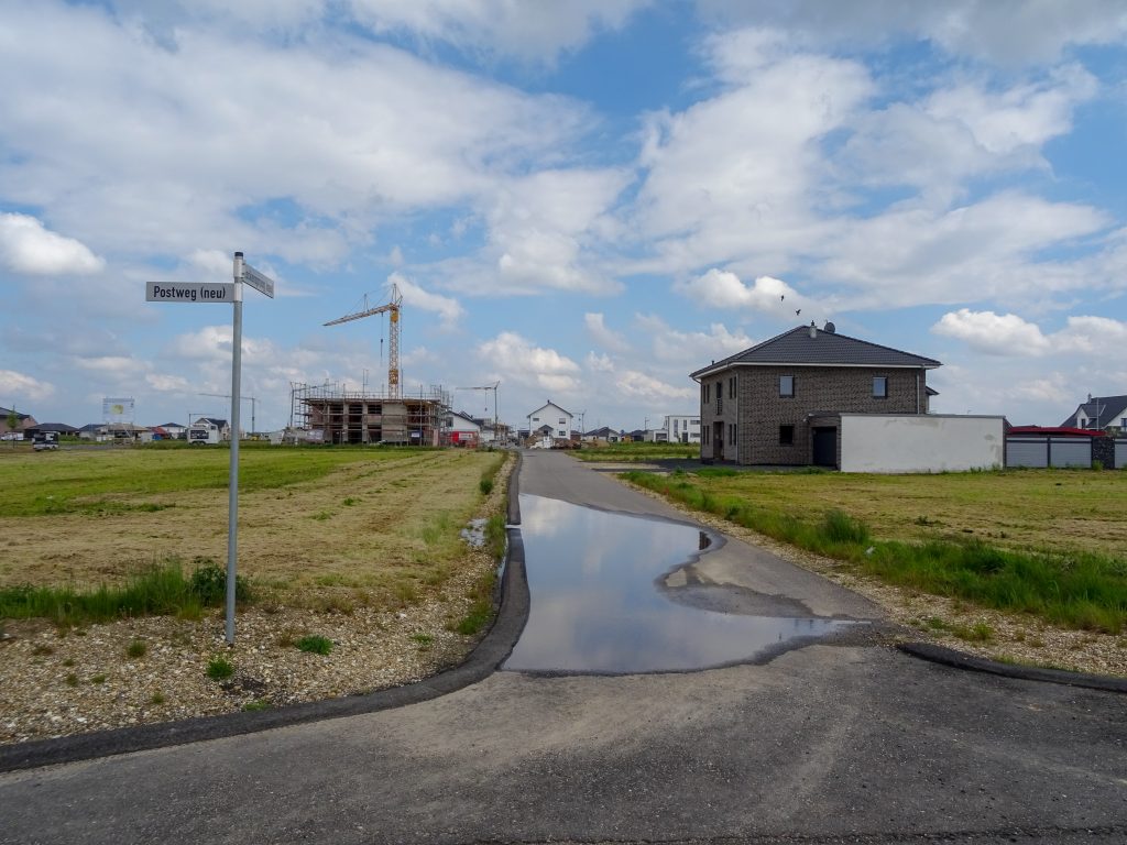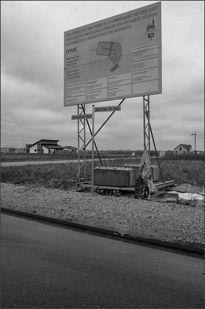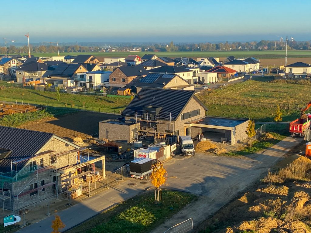Laut Aussage einer Anwohnerin sind bereits 19 Häuser in Keyenberg (neu) bewohnt. Die Anzahl der Baukräne ist nicht weniger geworden, ein Zeichen für weitere rege Bautätigkeit.
