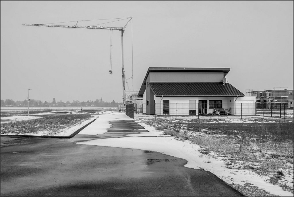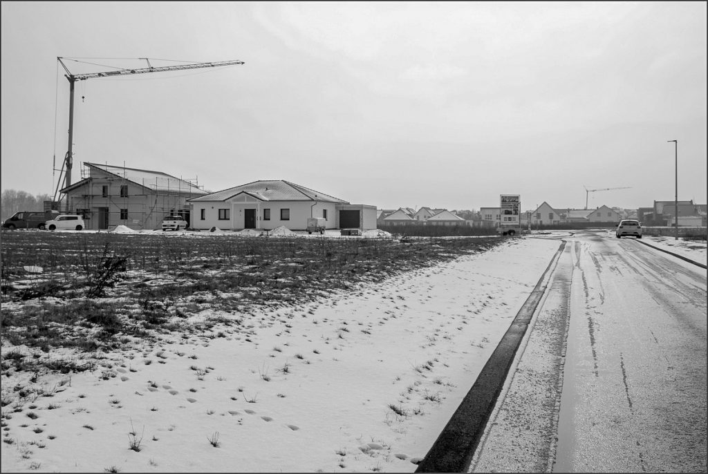 Noch ist niemand eingezogen, aber der erste Schnee bedeckt schon das neue Gebiet.