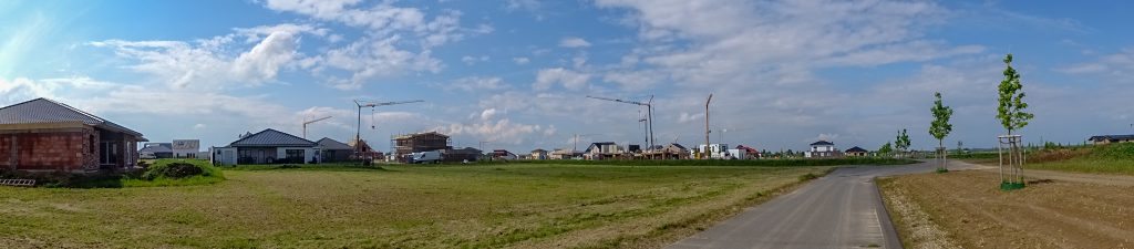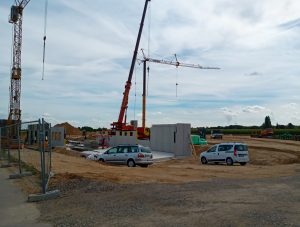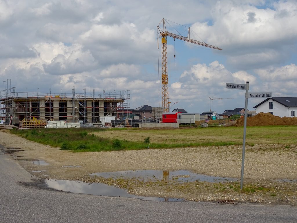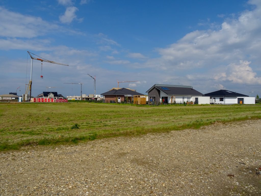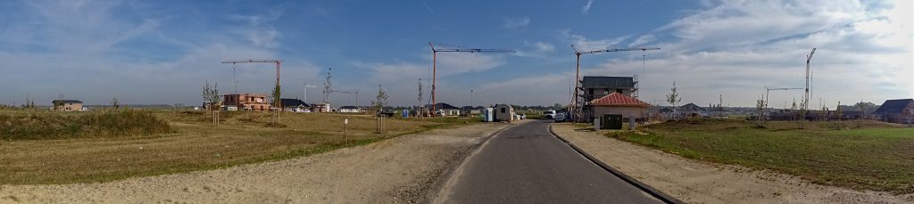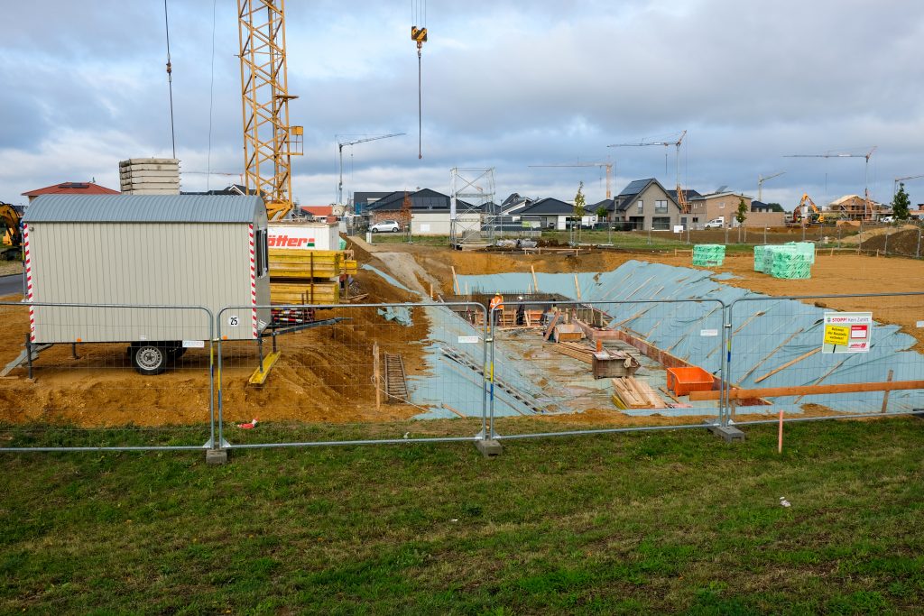 Im Juni 2017 war bereits ein Rohbau fertiggestellt. Doch die Bebauung erfolgte dann Schlag auf Schlag. Im Herbst 2017 standen bereits 17 Kräne im Neubaugebiet. Zwei Punkte fielen den Bauherren unangenehm auf: