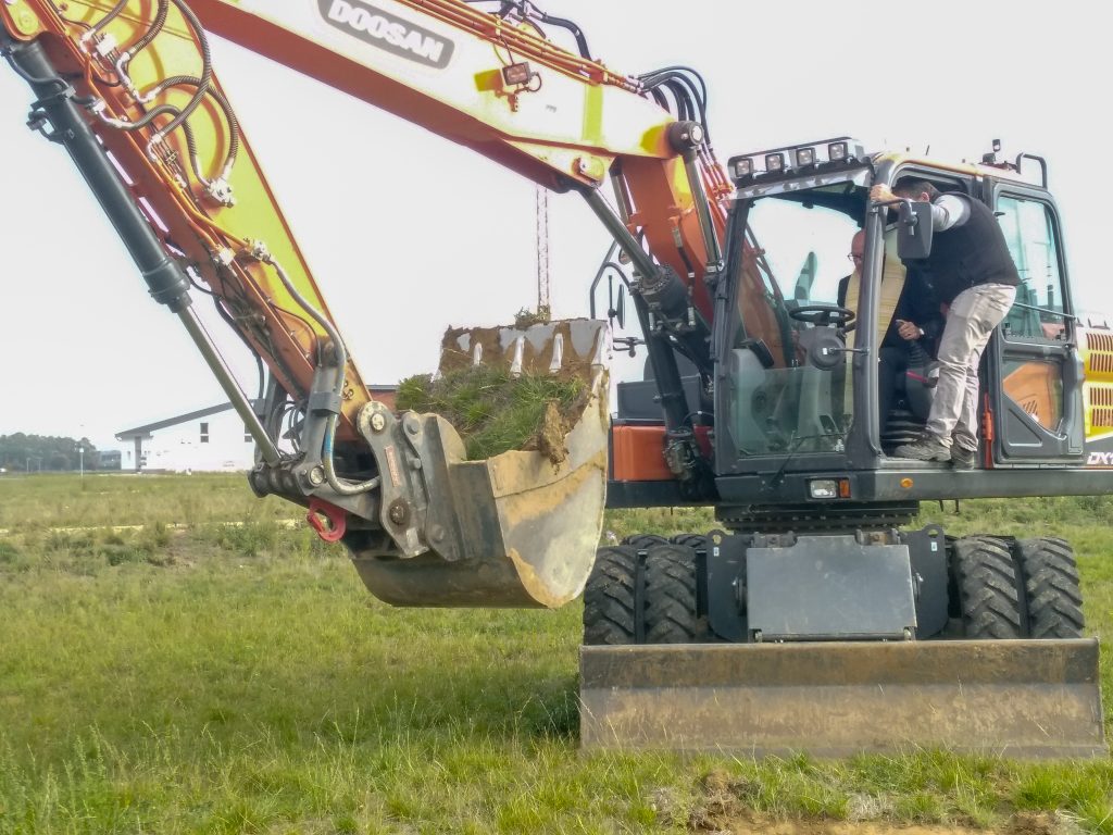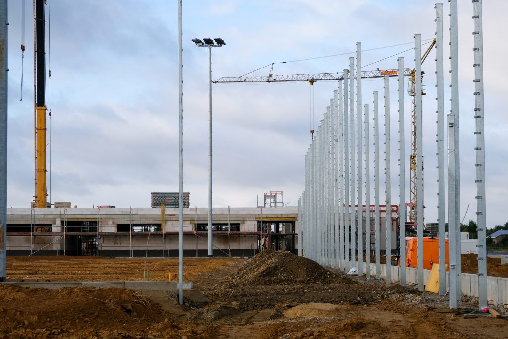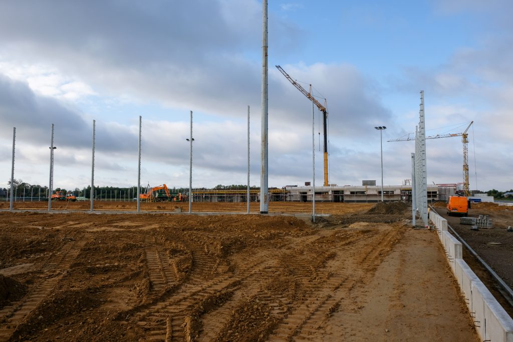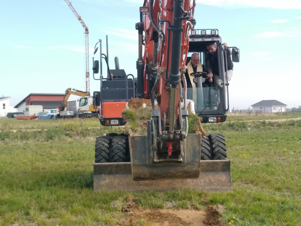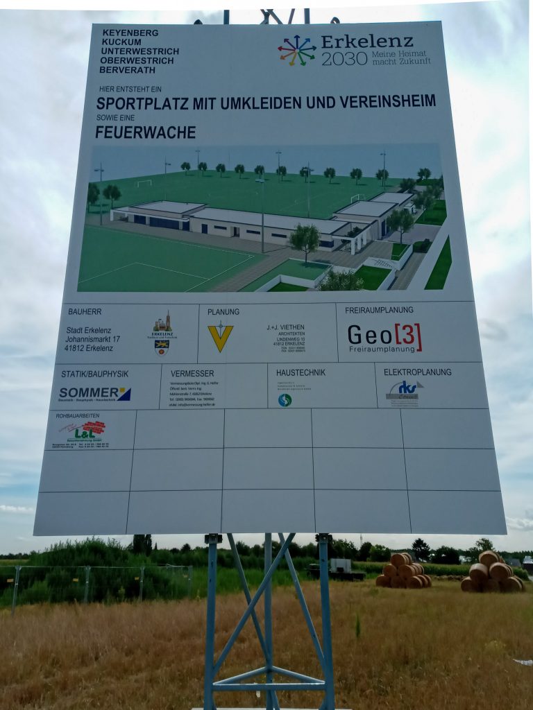 Von der Öffentlichkeit nicht so offiziell wahrgenommen entstehen außerhalb von Kuckum an der Straße in Richtung Mennekrath der Sportplatz mit Umkleideräumen und das Feuerwehrzentrum. Ende August wird hier bereits kräftig gebuddelt und gebaut.