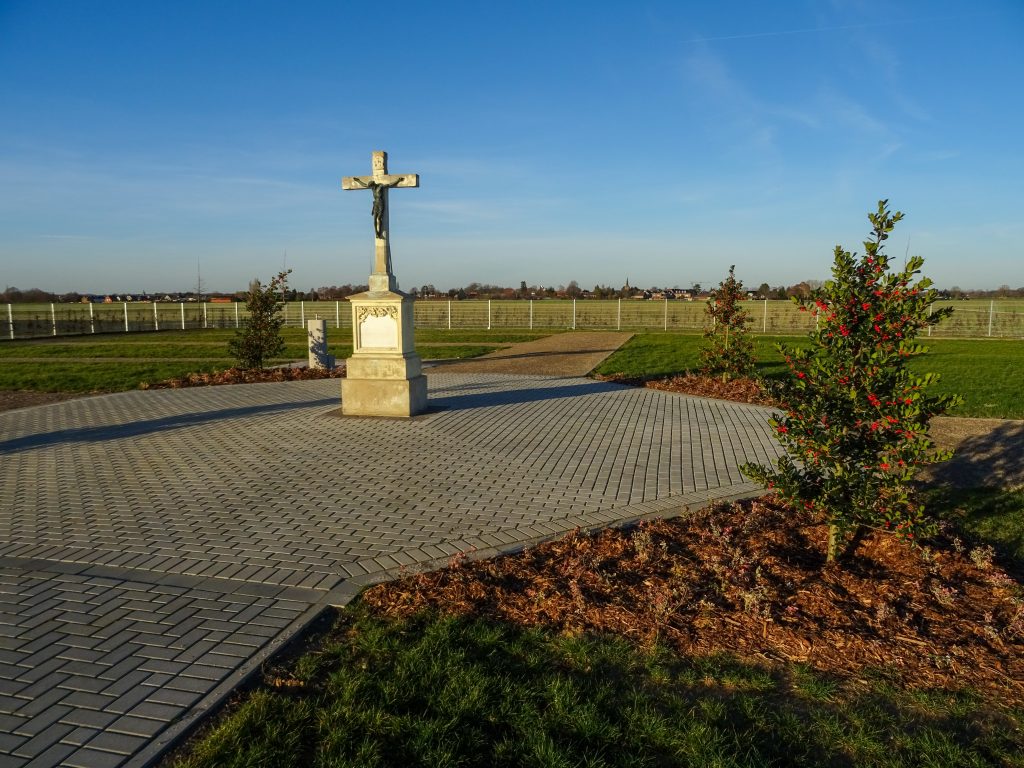Am 08. November 2019 wurde unter großer Anteilnahme der Bevölkerung von Pastor Rombach (katholische Kirche) und Pastor Jendgens (evangelische Kirche) der Friedhof im Neubaugebiet eingeweiht. Das Hochkreuz des Friedhofs in Kuckum (alt) bildet jetzt das Zentrum des neuen Friedhofs, von wo aus sternförmig die Wege abgehen. Es wurde von der Firma Wolff aus Jüchen saniert.