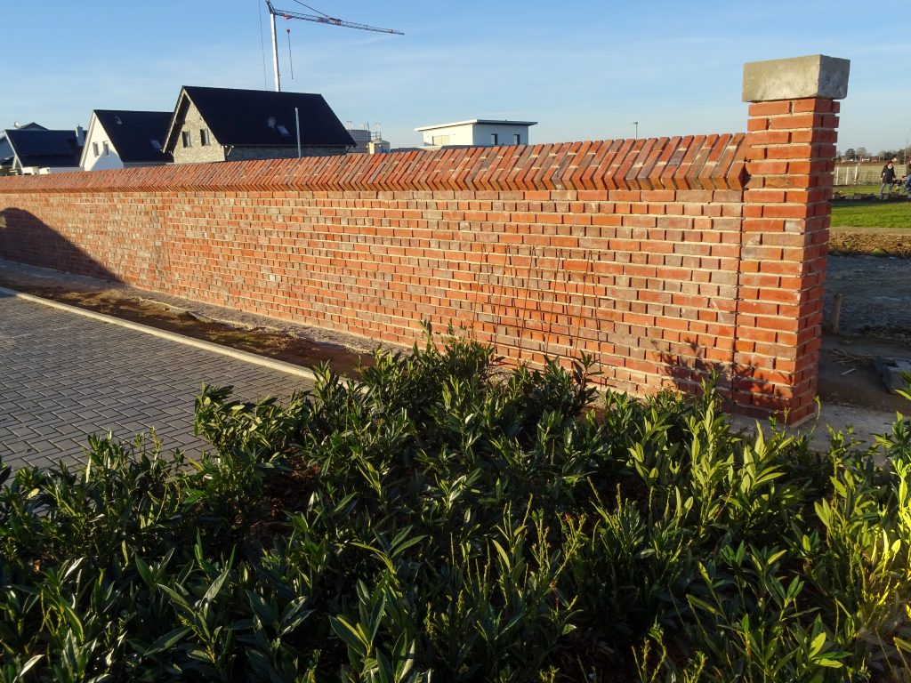 Die Haupteingangsseite besitzt eine Mauer, die übrigen Begrenzungen bestehen aus einer Heckenbepflanzung.