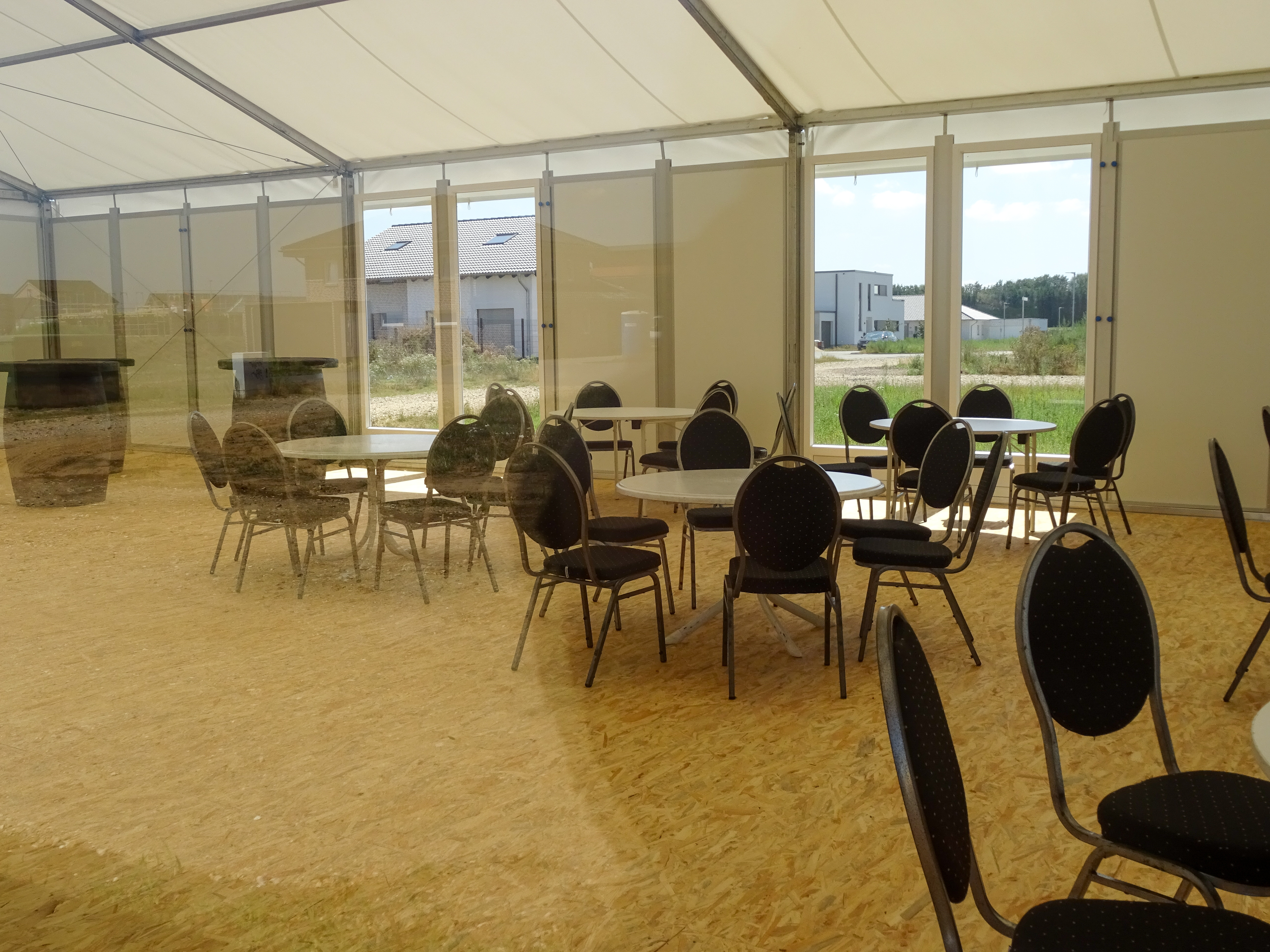 RWE-Power stellt ein Festzelt in der Nähe des Keyenberger Marktes auf. Es soll Vereinen, evtl. auch Privatpersonen, als Veranstaltungsraum dienen, solange keine Festhalle zur Verfügung steht.