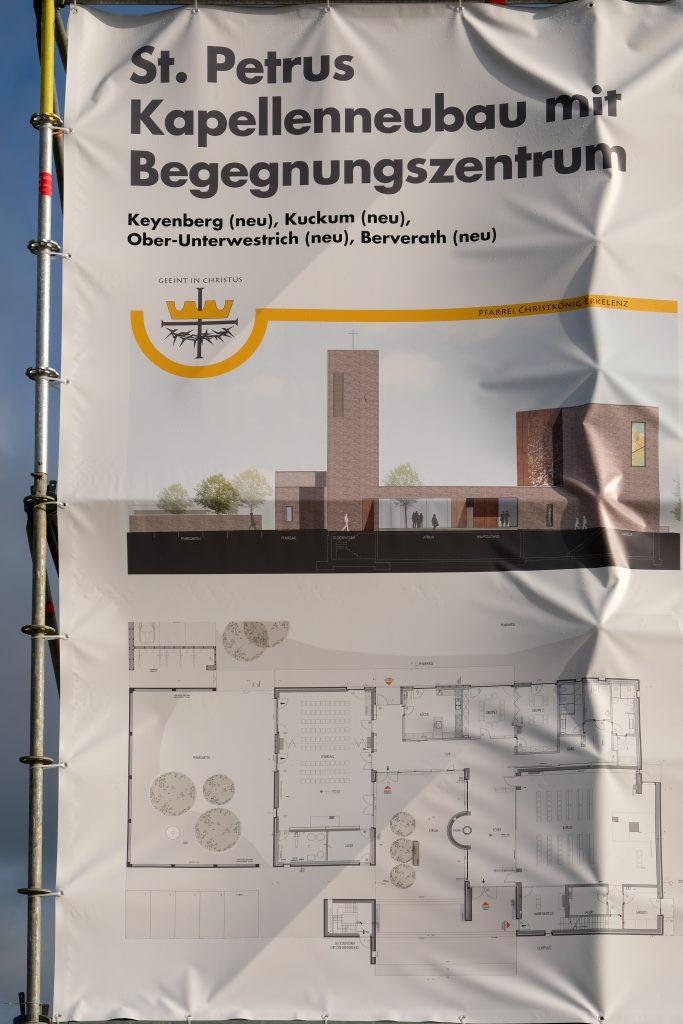 Durch Pfarrer Werner Rombach erfolgte am 4. September 2020 der erste Spatenstich für die neue Kapelle und das Begegnungszentrum der Umzugsorte Keyenberg, Kuckum, Westrich und Berverath. Die Kapelle erhält ein neues Patrozinium. Sie wird dem Heiligen Petrus geweiht und heißt Sankt Petrus. Die Namen der alten Kirchen bleiben gleichwohl erhalten. Der Gottesdienstraum wird Heilig Kreuz, der Taufraum Herz Jesu und das Begegnungszentrum Sankt Josef heißen. So bleiben die Gedenken an die alten Kirchen erhalten. Die neue Kapelle entsteht auf dem Baugrundstück An Sankt Kreuz / Am Zourshof. Kapelle und Begegnungzentrum werden nach ökologischen Gesichtspunkten gebaut, sie erhalten Dachbegrünung und Photovoltaikanlagen.