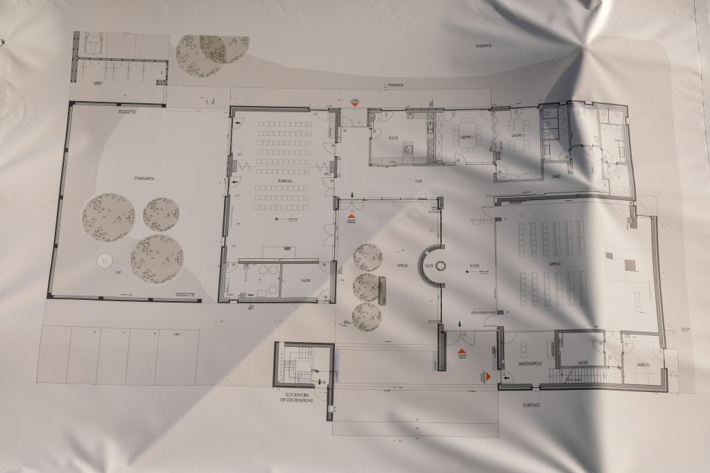 Pfarrer Rombach möchte durch die Wohnungen die Präsenz der Kirche vor Ort stärken. Gedacht wird daran, kirchliche Symbole der alten Orte hier zu integrieren.