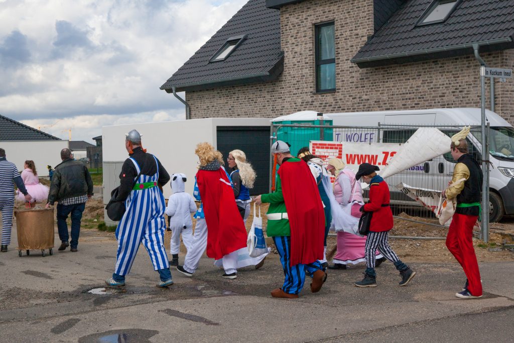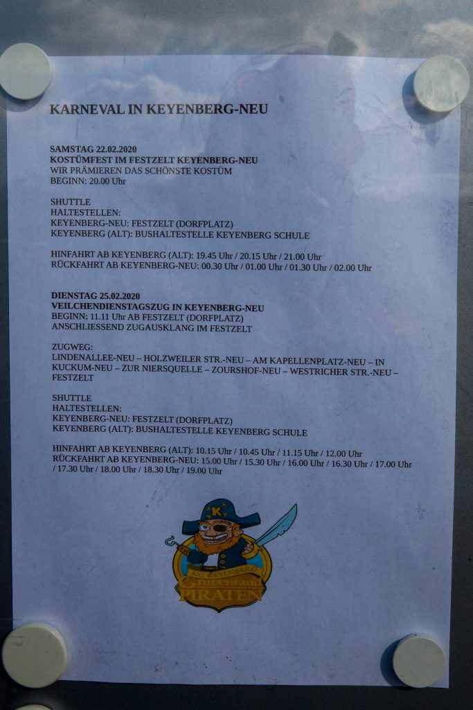Am Veilchendienstag zog der erste Karnevalsumzug der Keyenberger Grubenrandpiraten durch das Neubaugebiet. Einige Fußgruppen, unter anderem auch aus Rath-Anhoven, hatten sich am Zelt in Keyenberg (neu) getroffen und zogen um 11:11 Uhr los. Der Zugweg führte durch alle Ortschaften und endete wieder im Zelt zu einem Umtrunk. Auch ehemalige Keyenberger, die nicht im Umzugsort wohnen, trafen sich, um dabei zu sein. Die Gruppen in den bunten Kostümen hätten aber mehr Zuschauer am Rand verdient gehabt.
