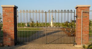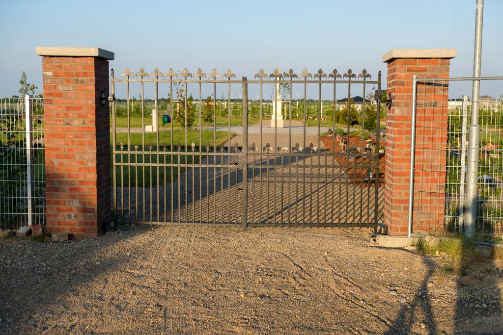 Der neue Friedhof hat nun seine geplante Umfriedung erhalten. Zu Südseite hin, dort wo der Haupteingang ist, wurde ein neues Tor errichtet.
