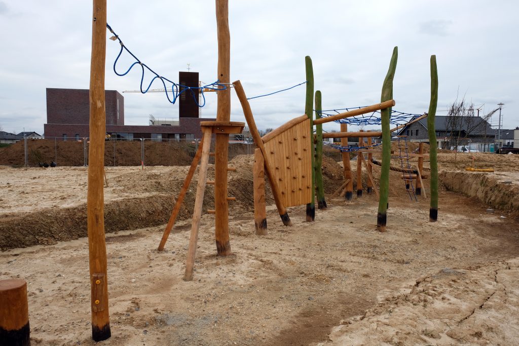 Seit Monaten hat die Stadt Erkelenz bereits Spielgeräte auf einem freien Platz nördlich der neuen Kapelle errichten lassen. Dazu wurden im letzten Jahr die Bedürfnisse der Kinder aus den Ortschaften abgefragt. Leider wurde am Platz noch nicht weitergebaut. Es fehlen die Bodenbeläge und teilweise auch die Bepflanzung. Steht zu hoffen, dass das Ende der Bauarbeiten bald bevorsteht, denn warmes Wetter im Frühling lockt die Kinder hinaus zum Spielen.