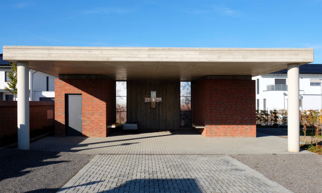 Am 25.10.2022 wurde auf dem neuen Friedhof ein Kolumbarium eingesegnet. Unter der Teilnahme des Bürgermeisters Stephan Muckel, des Pfarrers Günter Jendgens, des Beigeordneten Ansgar Lurweg, der RWE-Power-Vertreterin Elisabeth Meyers-Beecks und des Glaskünstlers Marcus Steffen weihte Pfarrer Rombach der Kirchengemeinde Christkönig Erkelenz in einem kurzen Gottesdienst die Anlage. Das Kolumbarium besteht aus einem dreiseitig geschlossenen Raum, der durch die künstlerische Gestaltung des Glaskünstlers Marcus Steffen lichtdurchflutet und zur offenen Seite nach draußen überdacht ist. Zentraler Punkt dieser Gestaltung ist ein vielfarbiges Kreuz, das trotz des farblichen „Chaos“ einen ruhigen Pol durch ein weiteres Kreuz in der Mitte hat. Zwei Fensterstreifen an den Seiten der Rückwand bestehen aus hellen und dunklen Quadraten, die in konzentrischen Kreisen angeordnet sind. Die dunklen Quadrate zeigen das Vater unser im Morsecode.3