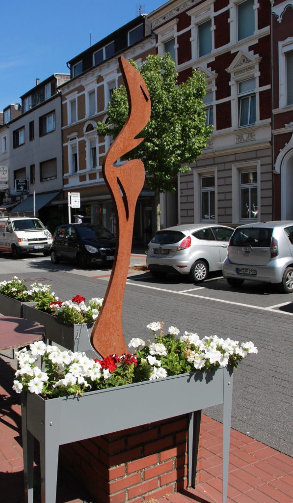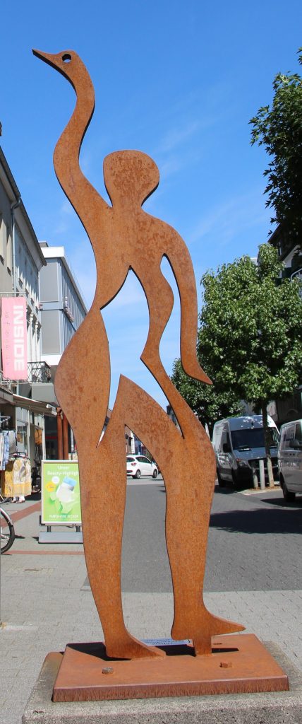 Die Skulptur erinnert an den Erkelenzer Karneval mit seiner Altweiber-Fastnacht.