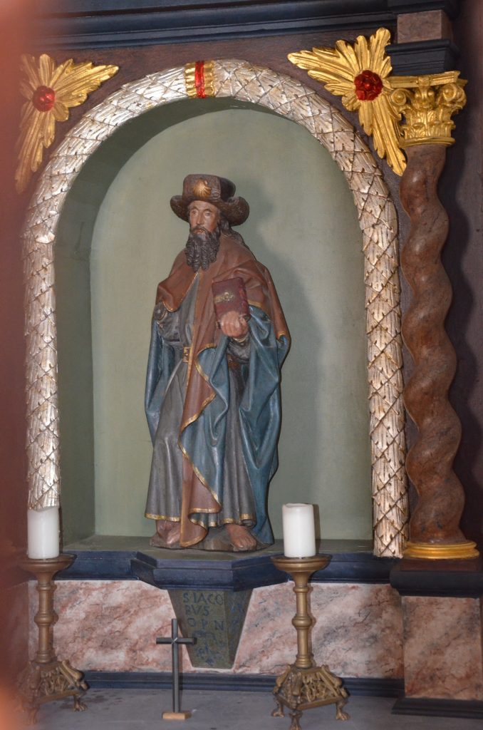 In der kleinen, weiß verschlämmten Kapelle, die laut Mathias Baux bereits 1457 gebaut wurde, stehen zwei alte Holzstatuen. Die erste stellt den Heiligen Jakobus dar. Die dargestellte weibliche Person der zweiten Statue ist strittig. Im Ort wird sie als Sankt Anna verehrt. Es könnte aber auch die Sankt Odilia sein und aus dem aufgelösten Kloster Hohenbusch, wo sie besonders verehrt wurde, stammen.