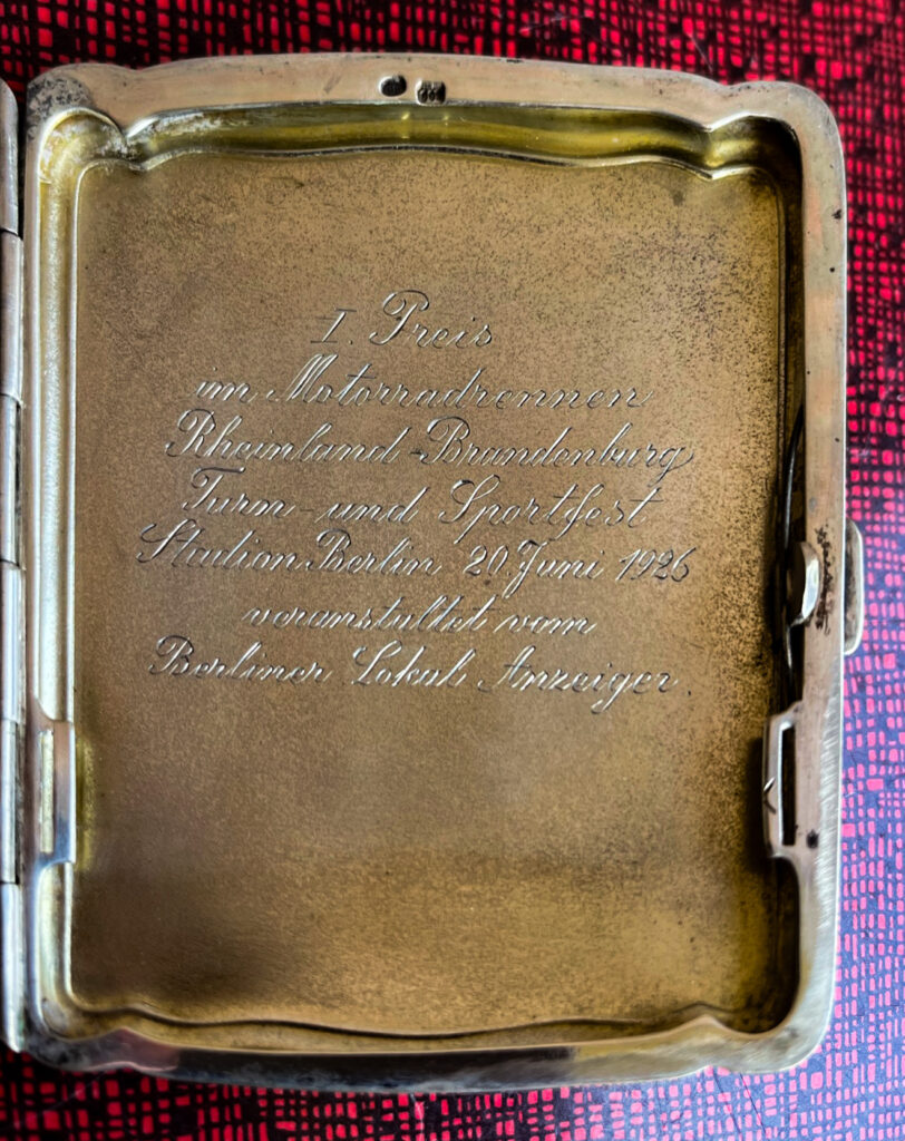 Dreimal deutscher Meister in Stuttgart auf der Solitüde-Strecke. In Berlin auf der Avus-Strecke errang er den Sieg und erhielt den Ehrenpreis der Stadt Berlin 1928. Eine glänzende Silberschale mit der Gravur: „Der große Preis Berlin 1928“9