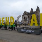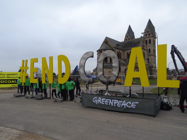 Am 8. Januar hatte sich bei kalter, nasser Witterung eine Menge Medienvolk eingefunden. Dies nutzte Greenpeace, um durch die Besetzung des Doms auf die Energieausbeutung im rheinischen Revier aufmerksam zu machen. Einige Aktivisten hatten das Portal erklommen und ein Plakat mit der Aufschrift „Wer die Kultur zerstört, zerstört auch den Menschen!“ aufgehängt. Eine Aktivistin kettete sich an den Abrissbagger.