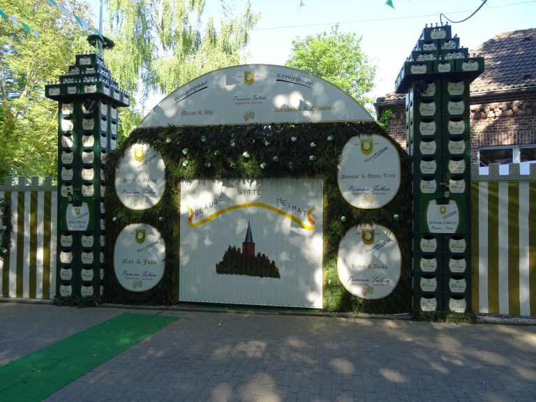 Das Schmücken des Dorfes für das Schützenfest beginnt nicht erst nach dem Wecken am Sonntagmorgen sondern wesentlich früher. Die Schützengruppen hängen bereits eine Woche vorher Girlanden auf, die die Straßen überspannen. Dicht an dicht hängen die Fähnchen. Wenn es regnet, hängen die Girlanden manchmal so durch, dass sie von LKW mitgerissen werden. In dieser Woche werden auch die Eingänge zu den Häusern der Majestäten gestaltet und geschmückt.