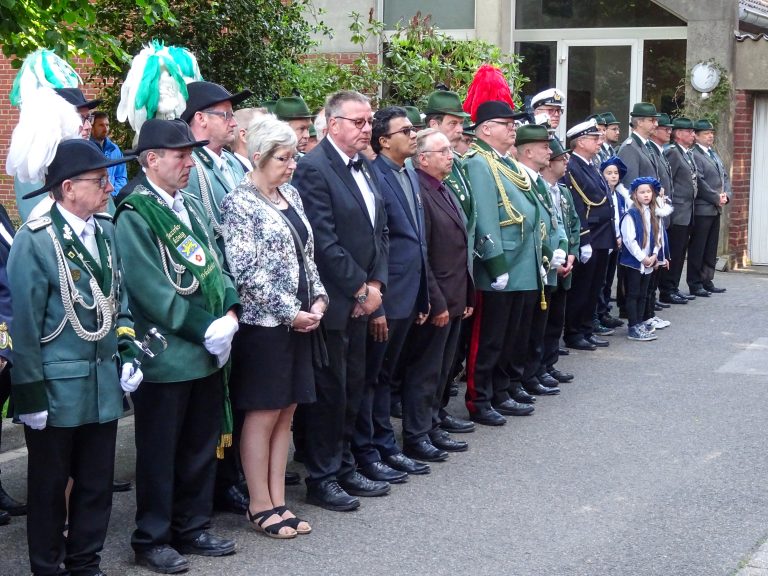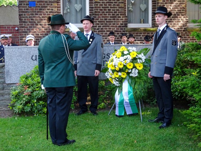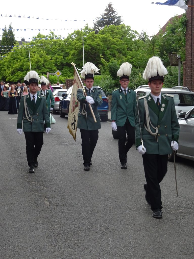 Am Sonntagmorgen werden die Schützen ganz früh bereits geweckt. Gegen sechs Uhr zieht das Trommelcorps durch den Ort und holt Majestäten und Offiziere aus den Federn. Das soll schon mancher Schütze wegen einer langer Samstagnacht verflucht haben. Aber nach dem Motto „Wer gewaltig feiern kann, muss auch gewaltig arbeiten können“ gibt es hier kein Pardon, denn um 8:15 Uhr heißt es bereits Antreten zum Kirchgang. Nach der Festmesse erfolgt am Kriegerdenkmal neben der Kirche eine Kranzniederlegung zum Gedenken an die Gefallenen des Dorfes mit anschließendem großen Zapfenstreich.