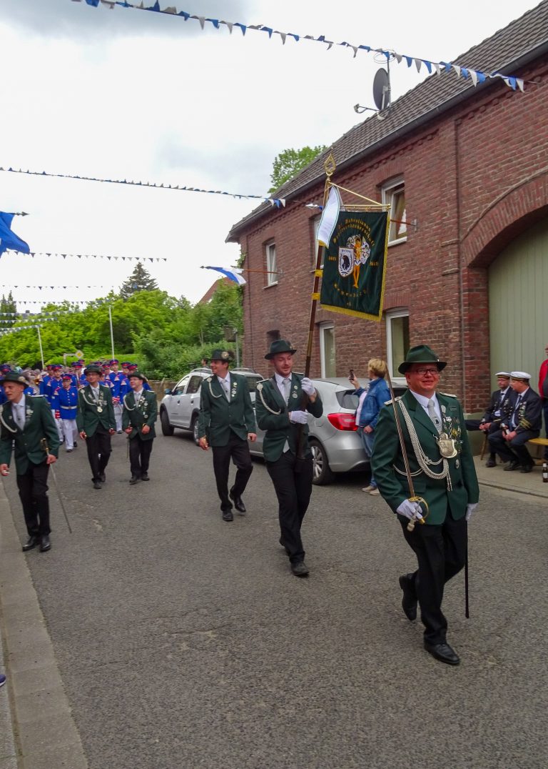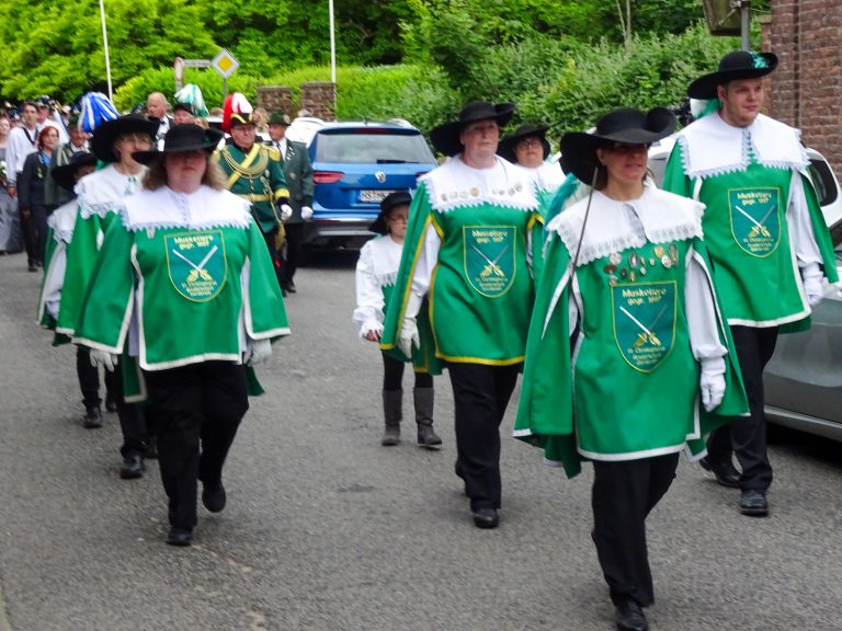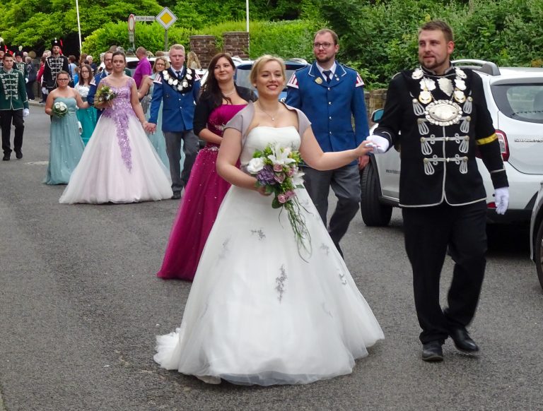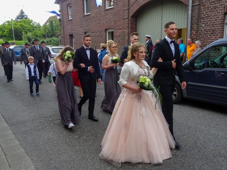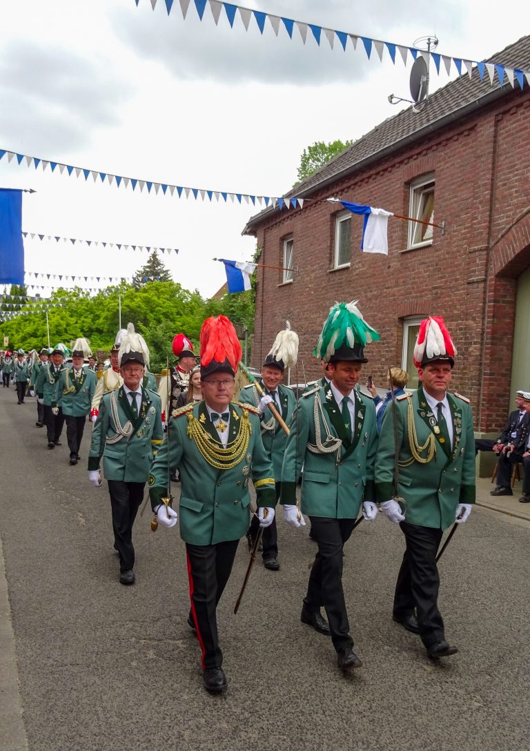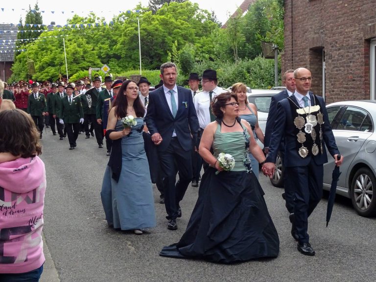 Nachmittags erfolgt der große Umzug durchs Dorf mit Parade auf der Westricher Straße. Zum 570-jährigen Jubiläum feierte der Bezirk Erkelenz sein Bezirksschützenfest in Keyenberg. Die vielen Majestäten aus den umliegenden Ortschaften machten den Zug besonders prunkvoll und bunt. Die Bilder geben einige Impressionen des Umzuges 2019 wieder.