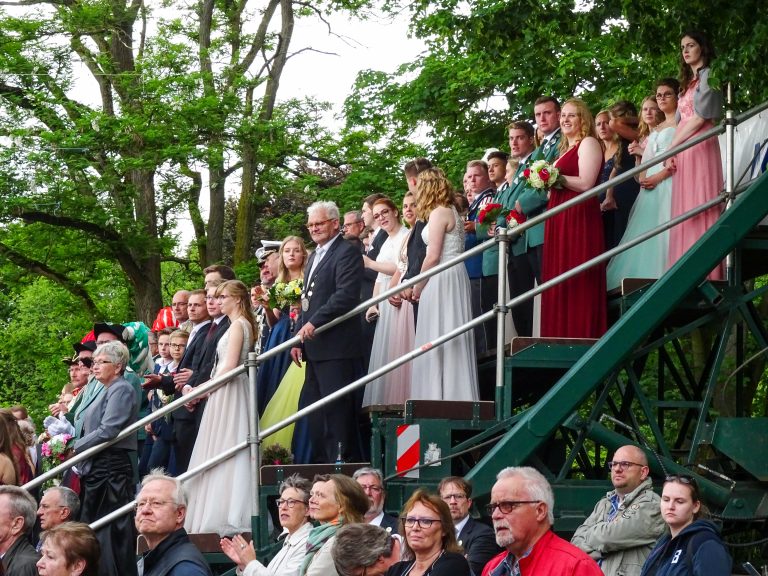 Das Schützenfest klingt am Abend durch den Klompenball aus. Die Gruppen treten hier in liebevoll gestalteten Holzklompen an.