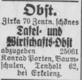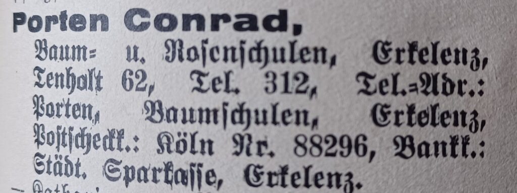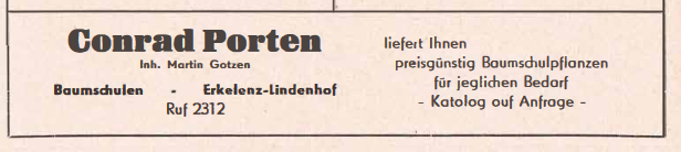 Im Jahre 1921 gründete Conrad Porten in Tenholt eine Baumschule. 5. Conrad Porten stammte aus einer Tenholter Bauernfamilie. Später befand sich der Betrieb an der Straße nach Kückhoven, etwas außerhalb der Stadt gelegen.6