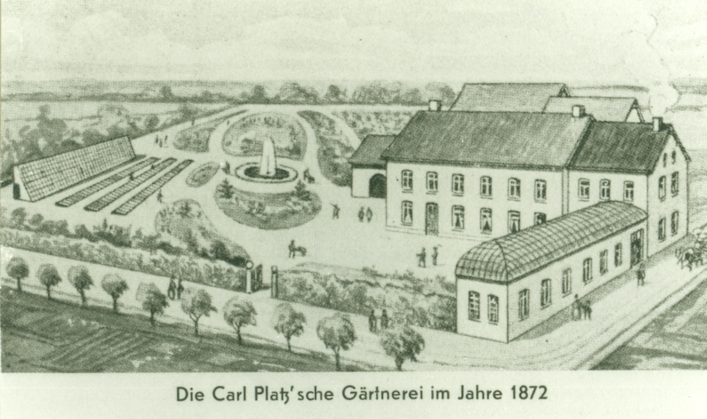 Der Gärtner Karl Platz, geb. am 24.05.1828 in Erfurt, kam 1850 als 21jähriger Gärtner aus Bonn (hierhin war er seinem Vater gefolgt) nach Erkelenz, siedelte sich in Oestrich an und heiratete die Putzmacherin Therese Boffen. Er gründete dort seine „Kunst- und Handelsgärtnerei“. Nach dem Tode seiner Ehefrau heiratete er 1870 die Bauerntochter Maria Marx, die in der Brückstraße wohnte. Die Marx’s besaßen Land u. a. im Bereich Brückstraße – Ziegelgasse.