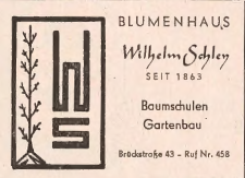 Gegenüber von Müller-Platz, an der Ecke Brückstraße/Theodor-Körner-Straße, lag die Gärtnerei und Baumschule Schley. Heinrich Hubert Schley (1829 bis 1872) kam aus Laurenzberg bei Aldenhoven und gründete 1862 zunächst am Franziskanerplatz eine Gärtnerei. Vorher war er u. a. als „Herrschaftsgärtner“ auf Burg Tetz tätig und machte hier erste Erfahrungen als Landschaftsgärtner und Baumschulist.
