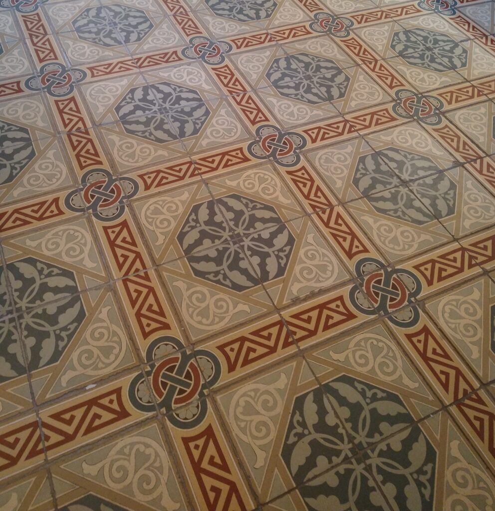 Hier einige der Fliesen aus der Kapelle, die jetzt im Haxenhaus verlegt sind: