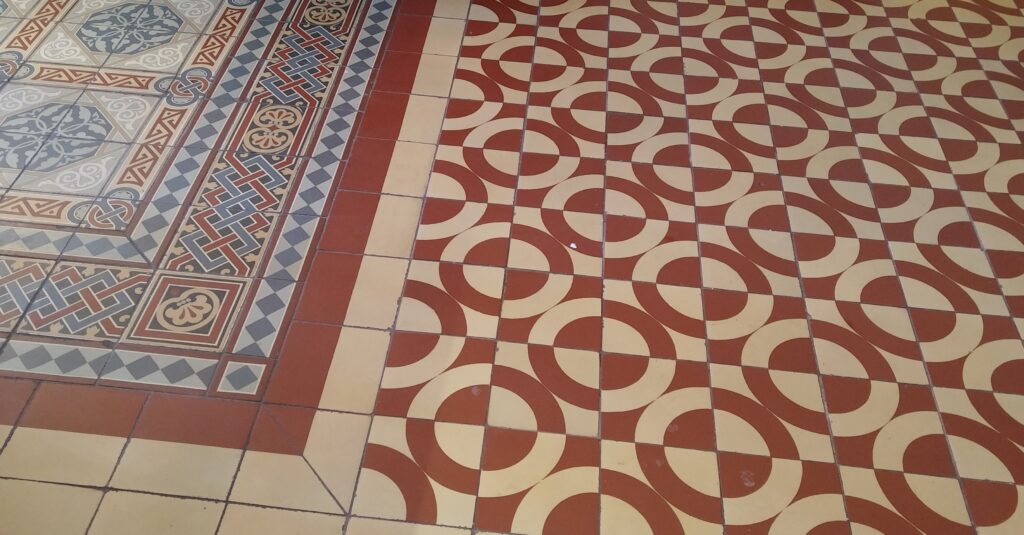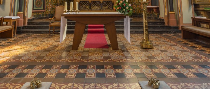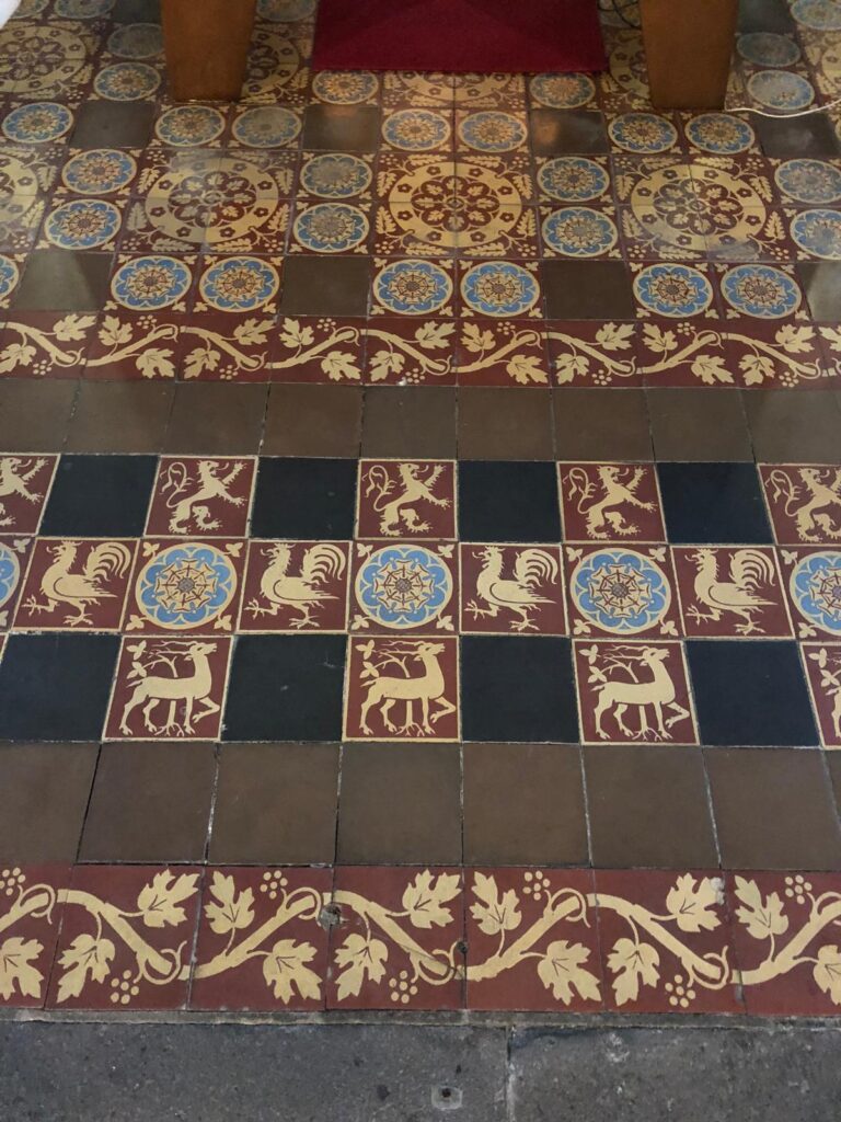 Hier einige Beispiele der verlegten Mettlacher Kirchenfliesen in Heilig Kreuz in Keyenberg: