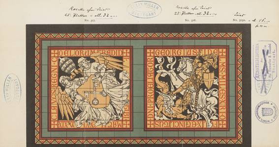 Die beiden Fliesen von Rath-Anhoven sind im Mettlacher Musterbuch von 1886 genannt. Entworfen wurden sie von Philipp Baum (*1849 – +1886), er war ein deutscher Architekt mit Schwerpunkt auf kunstgewerblichen Arbeiten.13