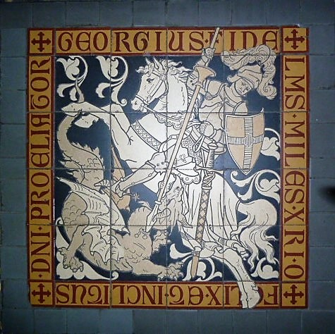 Beim Umbau des Altares in den 1980er Jahren stieß man zur allgemeinen Überraschung unter einem fest verklebten Teppich auf Mosaike aus Mettlacher Fliesen. Diese zeigen das Wappen des Papstes Leo XIII. und das Motiv „St. Georg im Kampf mit dem Drachen“. Soweit bekannt ist, sind die Fliesen in dieser Kombination, neben Rath-Anhoven und Dortmund (bis 2009 Pfarrkirche, nun ein Kolumbarium) noch in der Rheder Pfarrkirche St. Gudula (neue Kirche von 1898-1901 erbaut) und in der St. Anna-Kapelle in Haltern am See (seit 1674 Wallfahrtskapelle) zu sehen. Zusätzlich in den Niederlanden in den Kirchen: Kreuzerhöhung-Basilika von Raalte, der St. Michael Kirche in Schalkwijk, St. Antonius von Padua in Kortenhoef und St. Petrus und Paulus in Hengevelde.12