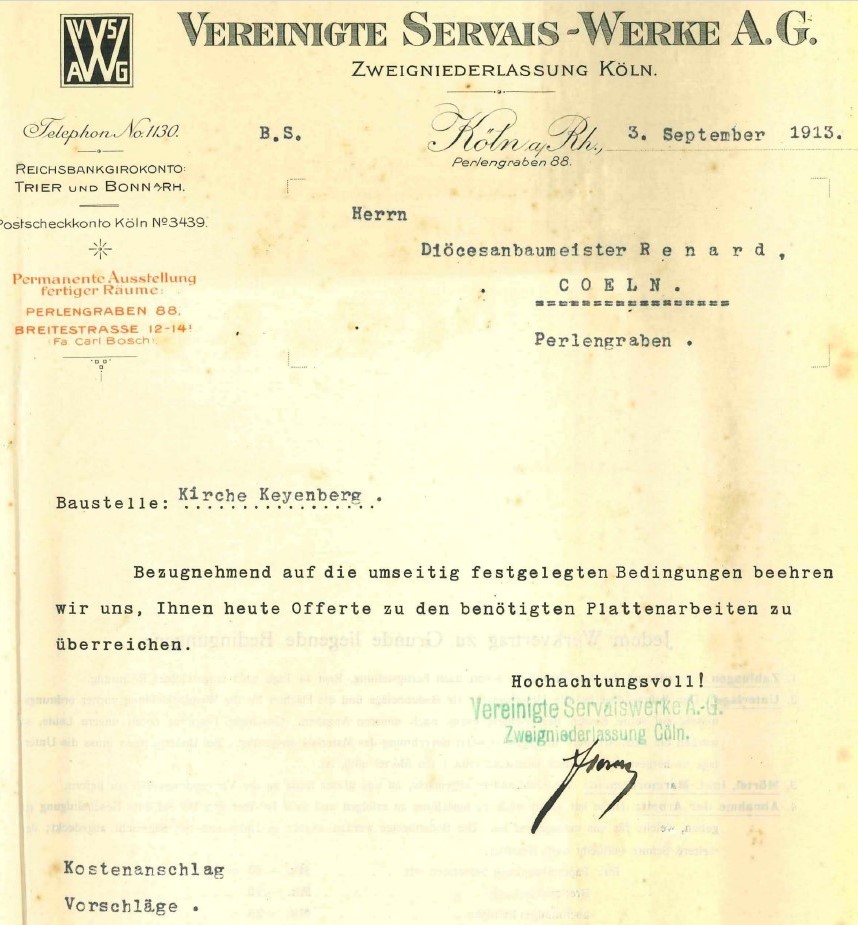 Ein eindeutiger Beweis, dass es sich um Mettlacher Kirchenfliesen handelt, ist die Referenzliste der Mosaik-Fabrik Villeroy & Boch aus dem Jahre 1894: