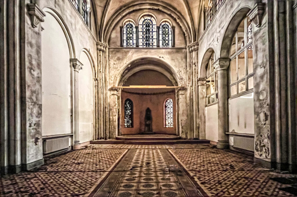 Wie der „Immerather Dom“ wurde auch das Kloster „Haus Nazareth“ im Jahre 2015 abgerissen. Aber anders als in der Kirche entgingen diese Mettlacher Fliesen der Vernichtung.