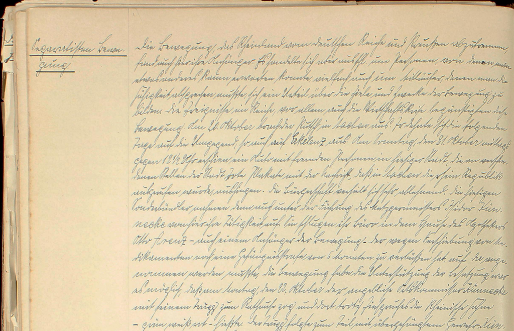 Spitzlei schildert dann den weiteren Verlauf der Besetzung des Rathauses. Er schreibt auch, dass es eine Anweisung der Regierung gab, den Widerstand gegen die Separatisten fortzusetzen. Die Stadtverordnetenversammlung beschloss, nur der „Gewalt“ zu weichen. Zum Ende seiner Aufzeichnungen schreibt Spitzlei: „Zusammenstöße und Kämpfe, wie in anderen Städten vorgekommen, gab es hier nicht.“