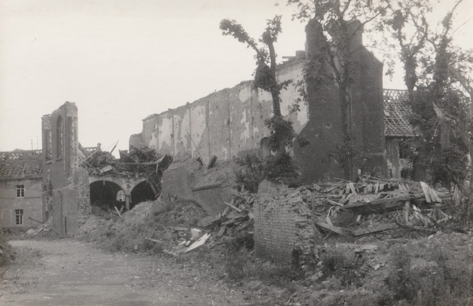 Mit dem letzten Bombenangriff am 23. Februar 1945 war die Innenstadt von Erkelenz fast vollständig zerstört. Drei Tage später eroberten die Alliierten Erkelenz und der Krieg war hier zu Ende.13