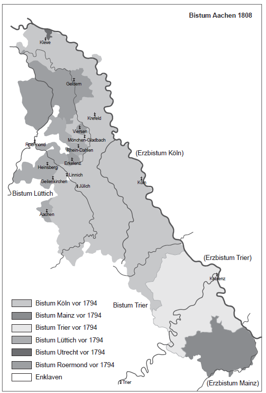 Jetzt gehört Aachen mit den anderen Suffraganbistümern (Limburg, Münster, Osnabrück und Trier) zur Kölner Kirchenprovinz.8