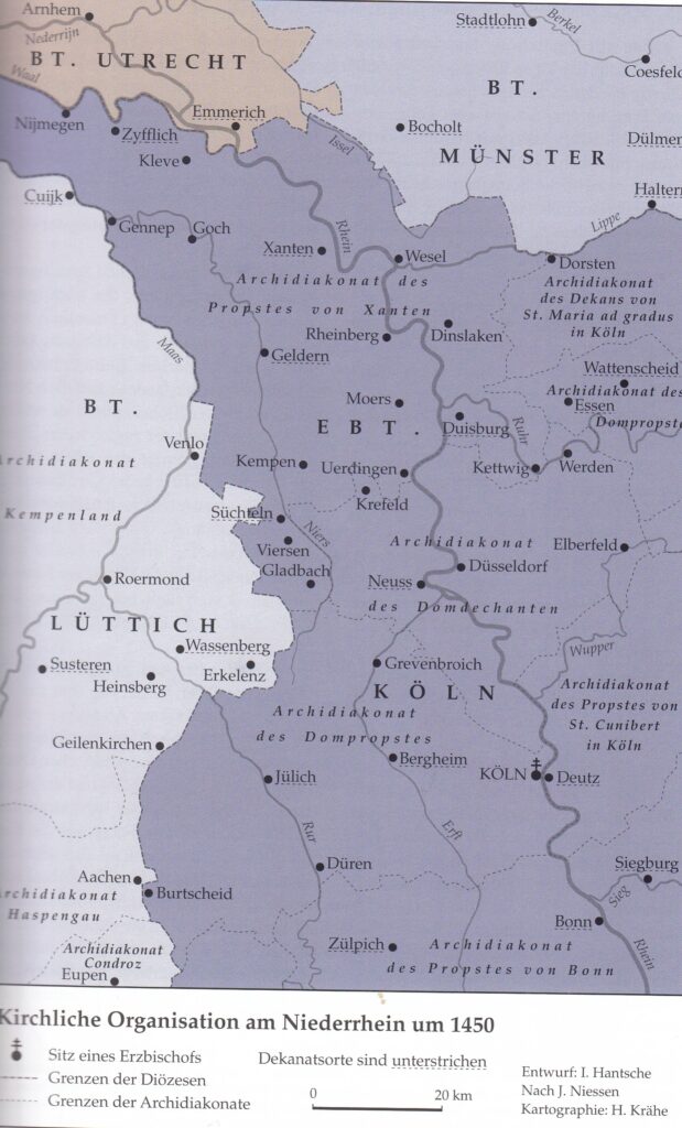 Einerseits verweist also die Wahl des Pfarrpatrons in Erkelenz auf die enge kirchenorganisatorische Verortung in den Maasraum.